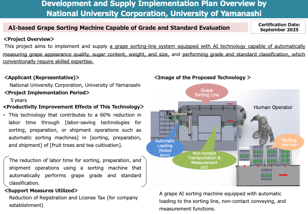 スマート農業技術の開発・供給に関する事業「無接触全特徴測定型ぶどう自動選果装置の開発」(2025–2027年度)