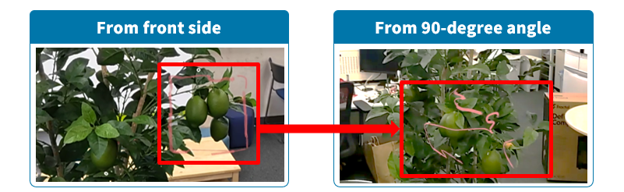 AR remote guidance is a system where workers wearing AR glasses and instructors in remote locations can share real-time video and audio and communicate using “annotations,” which are essentially drawings. This system allows instructors to reduce travel costs and provide guidance to more farmers. In the official Remote Assist app for the AR glasses HoloLens2, for example, when viewing annotations from the front side, as shown in the left image, you can recognize what is being pointed out. However, when viewed from an angle other than the front side, as shown in the right image, the annotations become distorted, making it difficult to identify the target object.