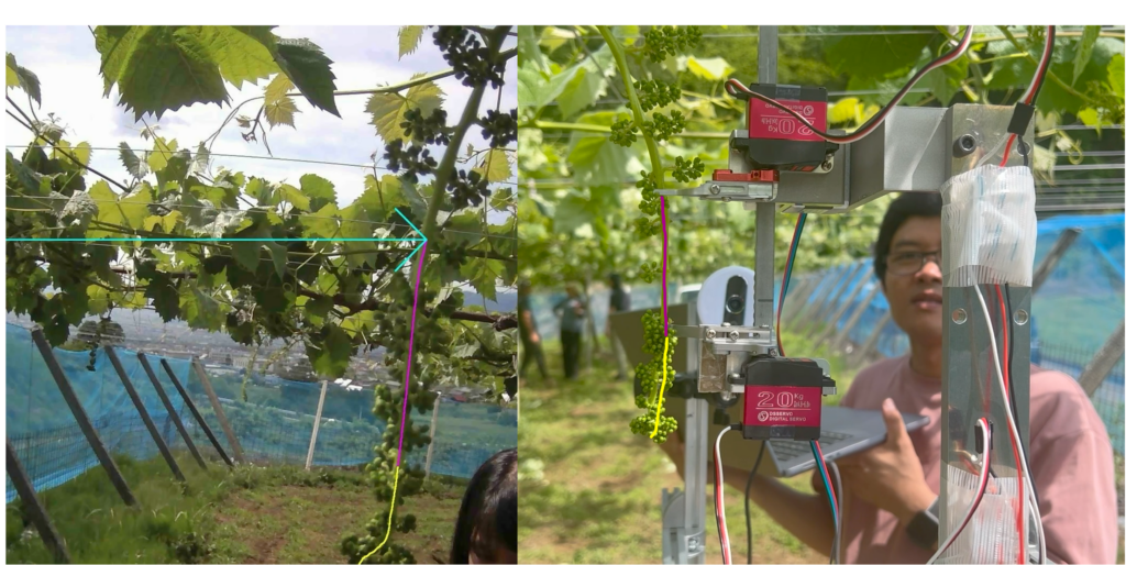 AIによる推定結果に基づき、ロボットは花穂の長さを目標とする長さに自動的に切断する。本システムは、高品質な果実の安定生産を維持しながら、作業時間を約25%削減することを目指しており、生産者の作業負担軽減と熟練作業への依存低減に貢献する。